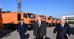 İlham Əliyev Bakıda məişət tullantıları daşıyan texnikalarla tanış olub