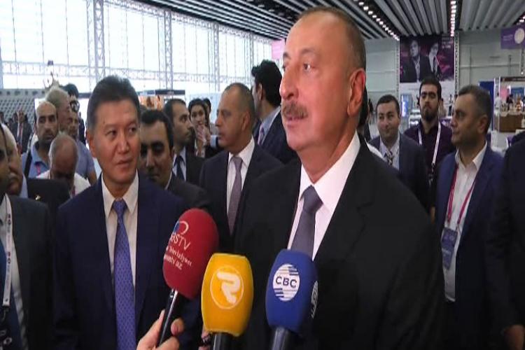 “Ümumdünya Şahmat Olimpiadasının Azərbaycanda keçirilməsi böyük hadisədir”. 42-ci Ümumdünya Şahmat Olimpiadasının yarışlarına start verən Prezident İlham Əliyev turnirlə bağlı təəssüratlarını jurnalistlərlə bölüşüb.