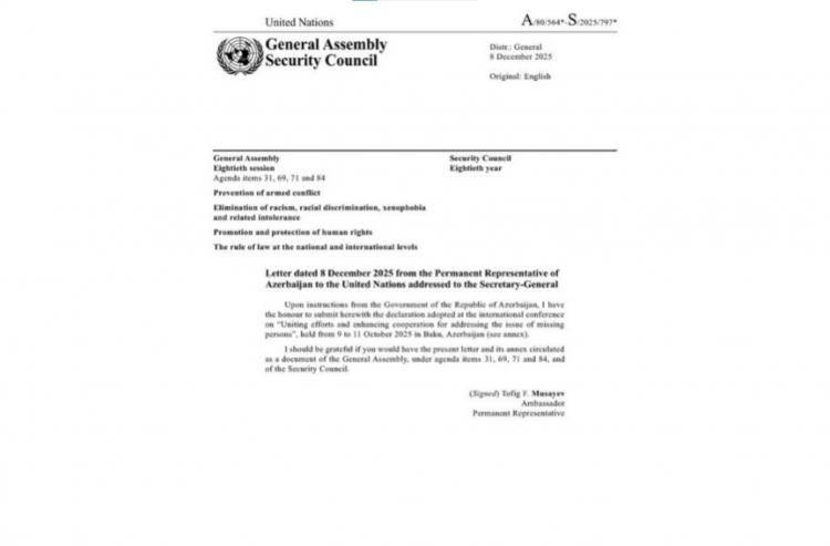 Bakıda itkinlərlə bağlı keçirilmiş beynəlxalq konfransda qəbul edilən bəyannamə BMT-nin rəsmi sənədi kimi dərc olunub