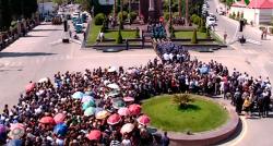 Şəmkirdə ulu öndərin abidəsi önündə izdiham müşahidə...