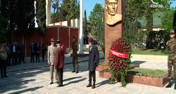 Gəncədə faşizm üzərində qələbənin 74-ci ildönümü ənənəvi olaraq ilk sovet ittifaqı qəhrəmanı İsrafil Məmmədovun qəbirüstü abidəsi önündə, şəhərin Xan...