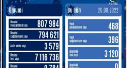 Azərbaycanda son sutkada koronavirus infeksiyasına 468 yeni yoluxma faktı qeydə alınıb, 396 nəfər müalicə olunaraq sağalıb. "COVID-19-dan ölən...
