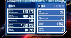 Azərbaycanda koronavirus infeksiyasına son sutkada 24 yeni yoluxma faktı qeydə alınıb, 31 nəfər müalicə olunaraq sağalıb. Ölən olmayıb. 425 nəfər...